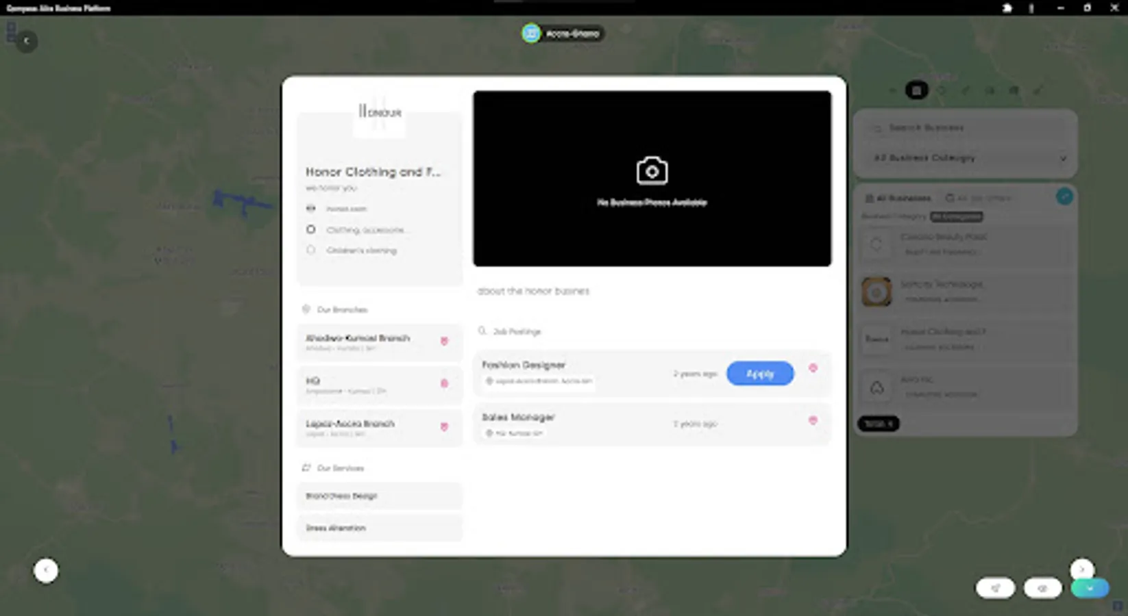 Whether you're looking for a restaurant, a hair salon, a mechanic, or any other type of business, Qompass has you covered. And if you're a business owner, you can register your business and services on Qompass, making it easy for customers to find you and learn about what you have to offer. Plus, Qompass also includes a job board where you can post or browse through job offers, making it a valuable resource for job seekers and employers alike. Try Qompass today and discover the power of our map-based platform for connecting businesses and customers.