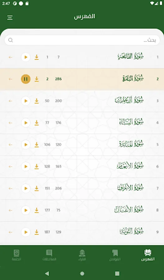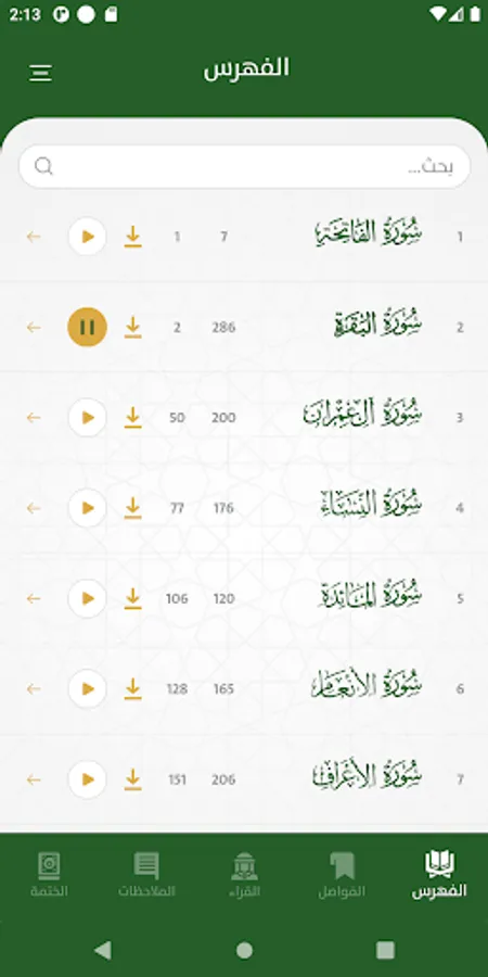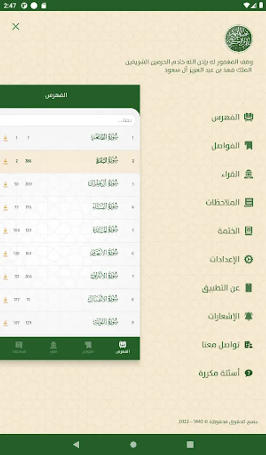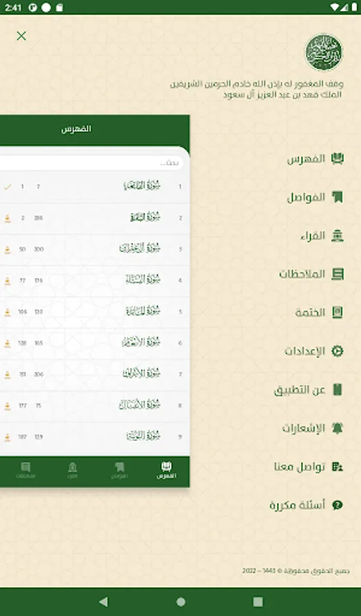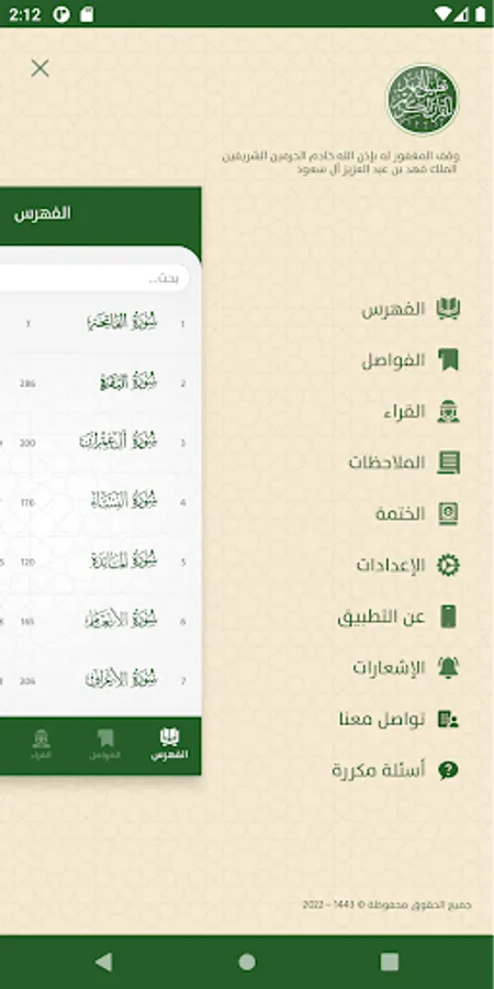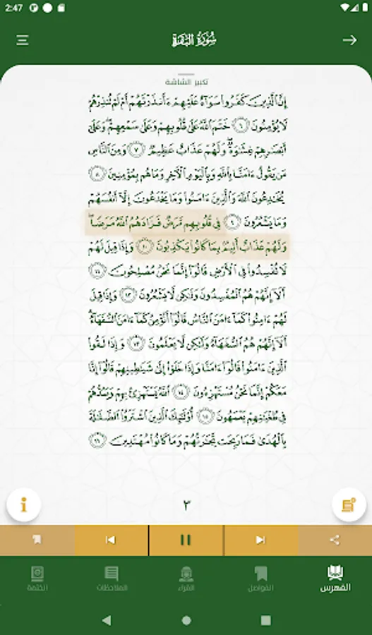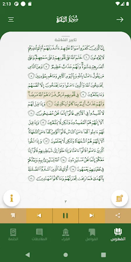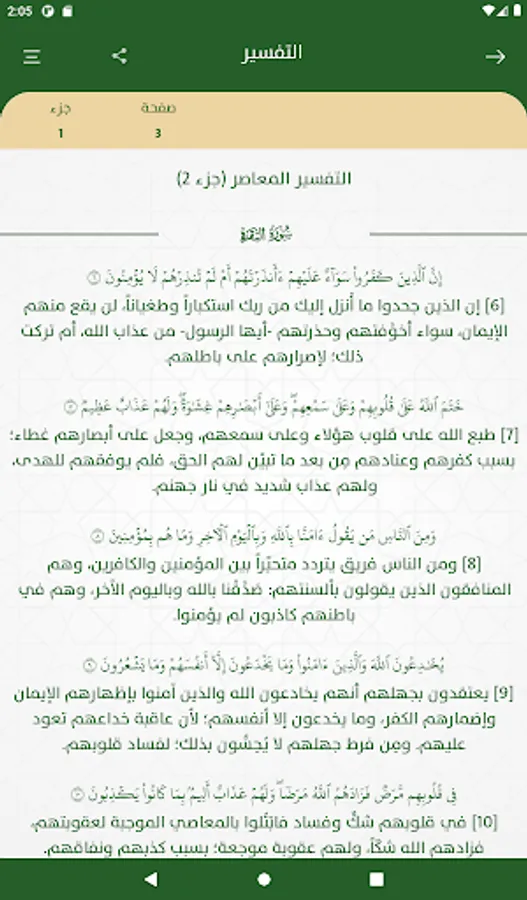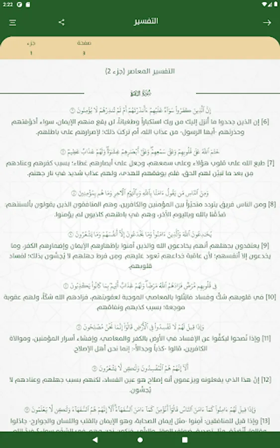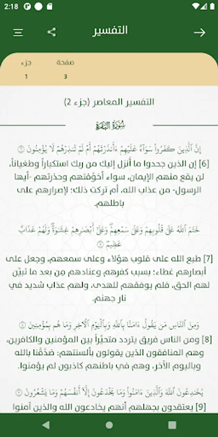 4- The ability to search by verses of the Noble Qur’an. With the ability to share verses.