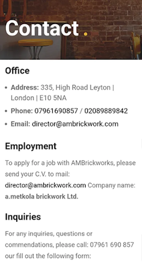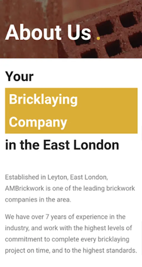 Established in Leyton, East London, AMBrickwork is one of the leading brickwork companies in the area. We have over 7 years of experience in the industry, and work with the highest levels of commitment to complete every bricklaying project on time, and to the highest standards.