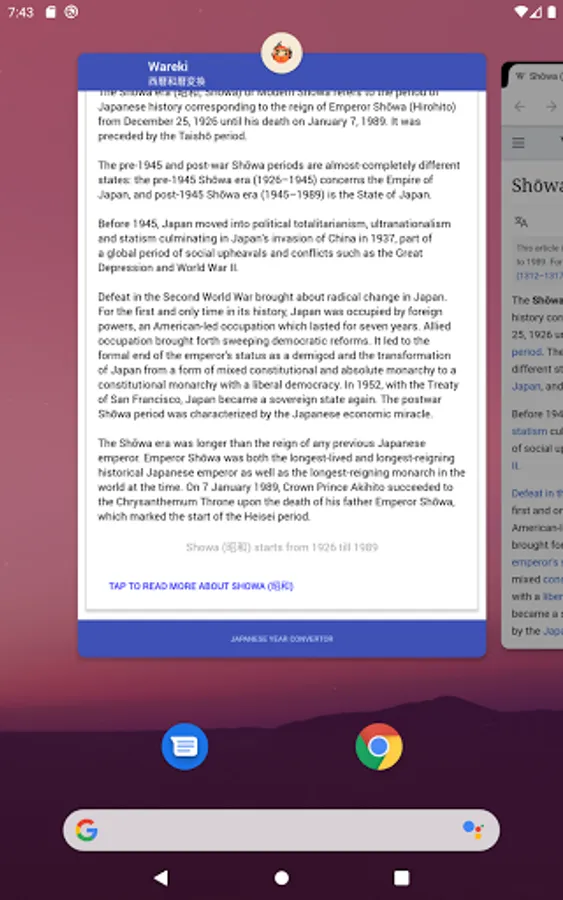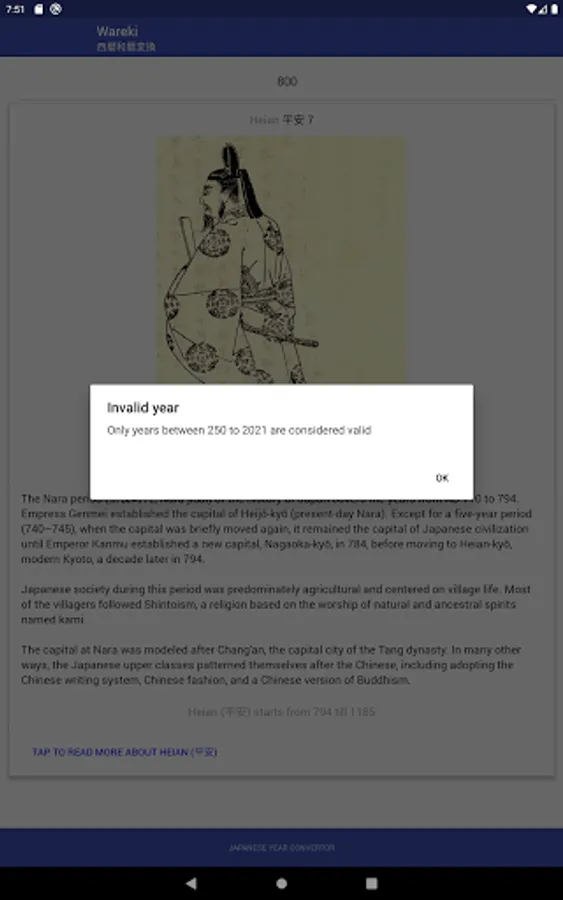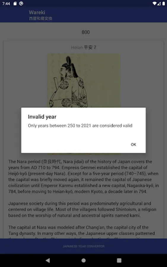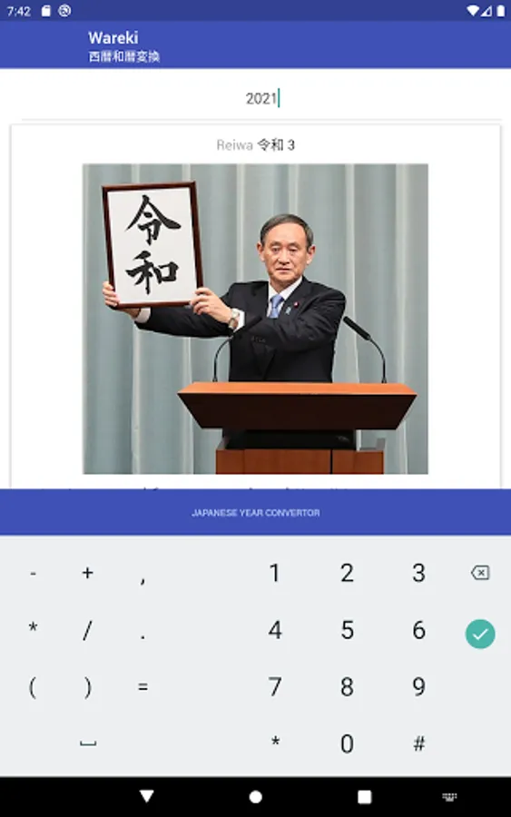 Wareki is a simple calendar convertor that converts Gregorian years to Japanese calendar years.