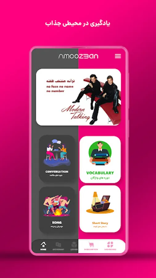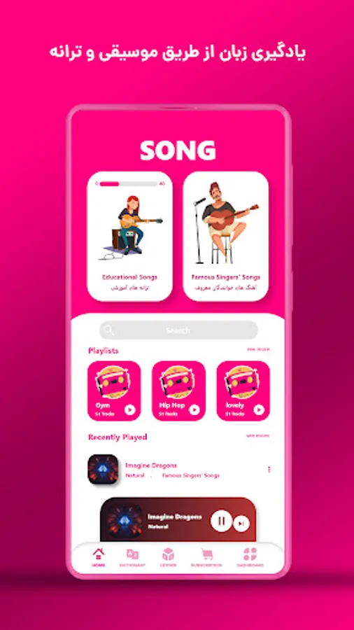 - دوره یادگیری زبان انگلیسی از طریق موسیقی و ترانه با صد ها آهنگ از خوانندگان محبوب دنیا