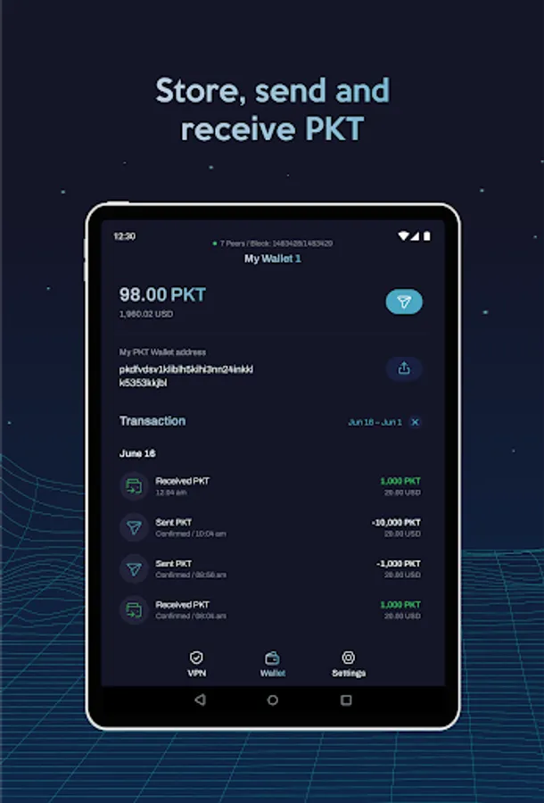 AnodeVPN wallet is also a convenient way to store, send, and receive PKT on your Android device or ARM-based Chromebook.