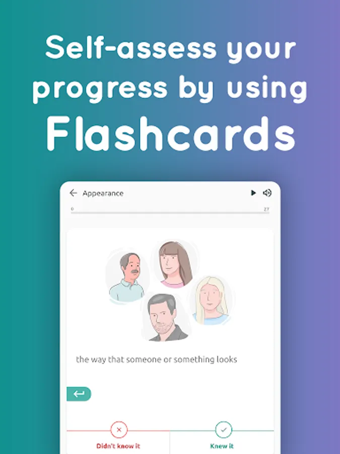 Most words use both example and pictures to help learners learn faster and easier. Features like flashcard and vocabulary quiz help learners assess their progress.