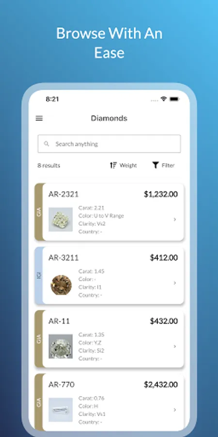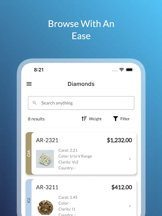 Sync your diamonds inventory with Diams so you could access and manage your diamonds wherever you are!