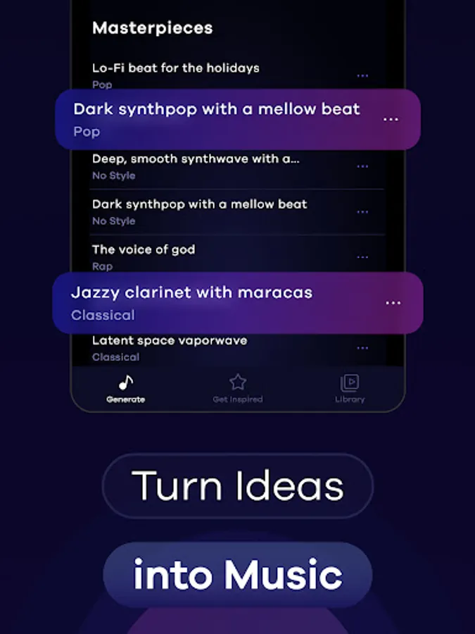 - Create personalized music tracks from any text