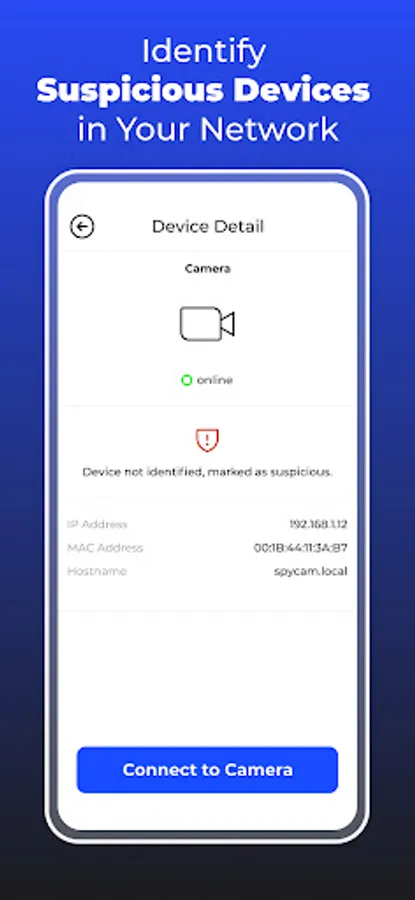 Make sure you're connect to the Wi-Fi network of the place you are visiting and tap on 'Start Scanning' and let our tool do the work. Our algorithm will scan your network and find out any device that is online. Using our advanced technology, the cameras will be marked as suspicious on the list.