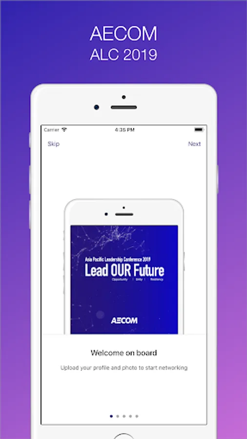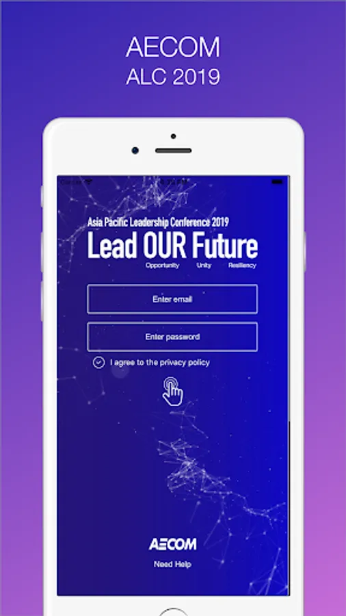 The app is to provide all necessary information and materials for all participants at the Annual Leadership Conference 2019 of AECOM which will be held in Singapore between November 28th and November 30th, 2018. The app not only facilitates the paperless login feature to the participants but also allow them to find the latest announcements, program agenda, people profile, presentations, photos, etc.