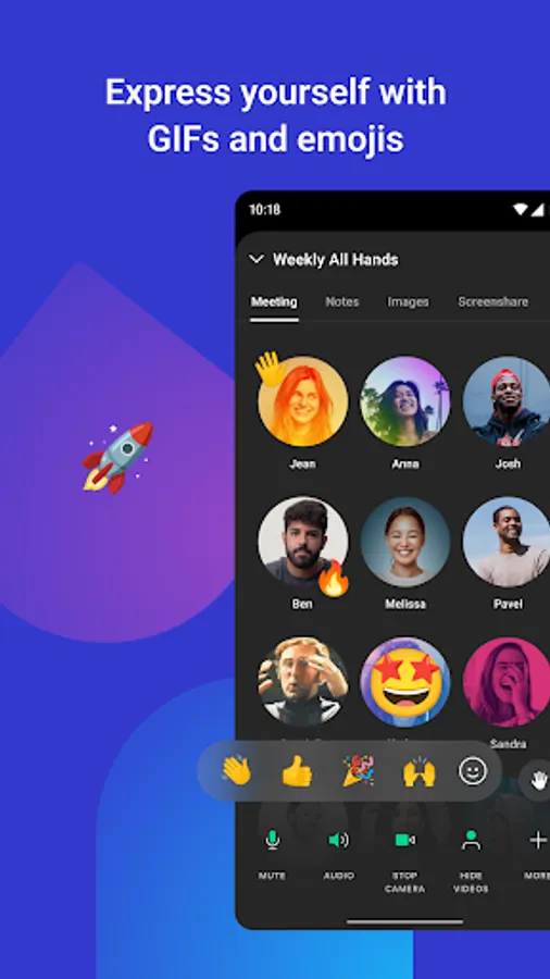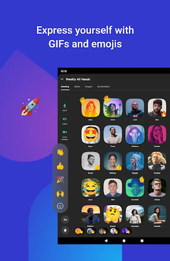 - React or respond to conversations with chat messages, emojis and GIFs