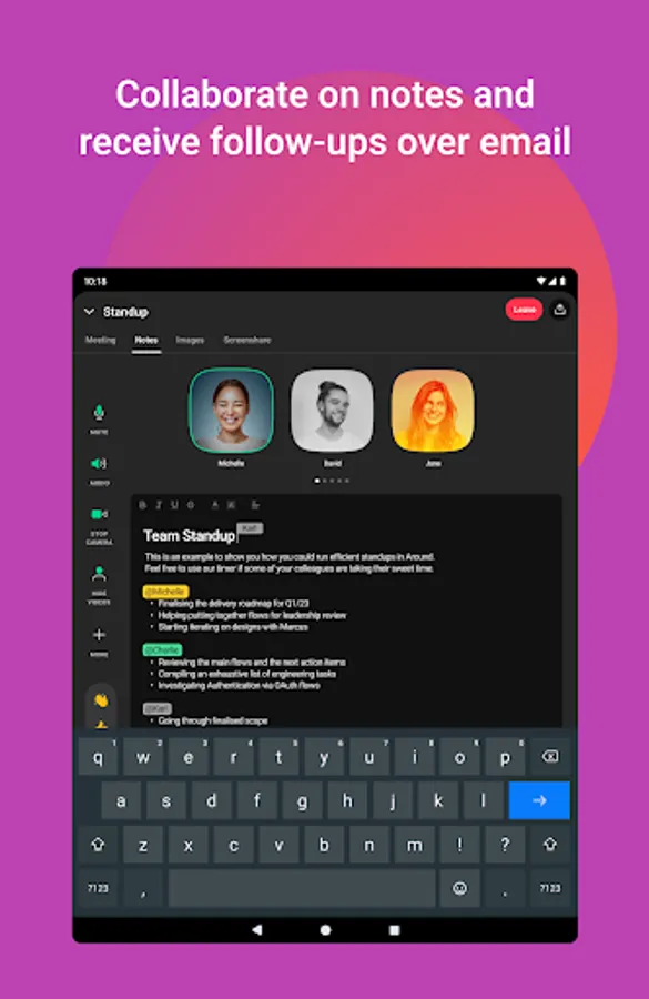 Around’s app for Android provides you with everything you need to seamlessly collaborate with your team on the go.
