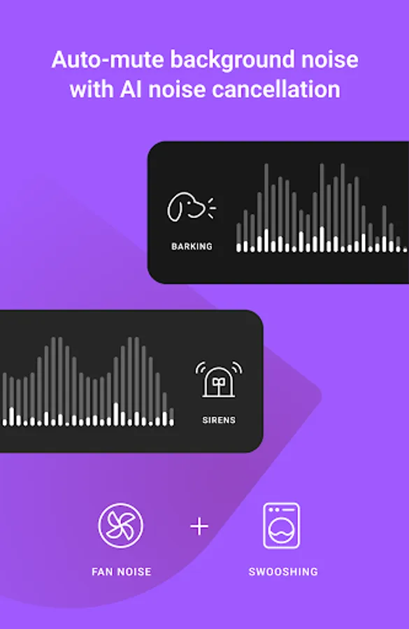 - Automatically mute distracting background noises with AI noise cancellation