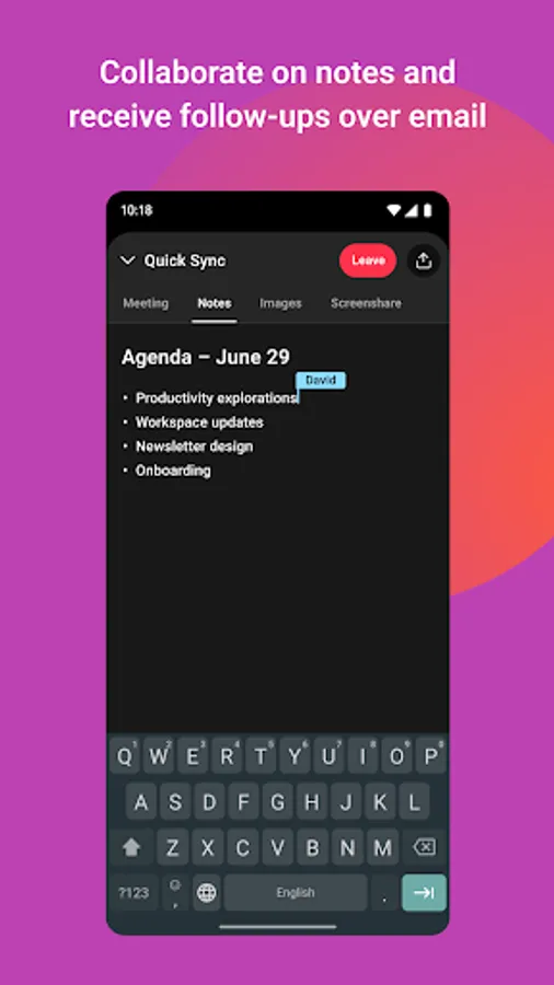 - Collaborate on notes and receive a follow-up summary over email after the call