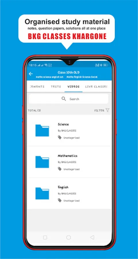 BKG CLASSES KHARGONE is an online platform for managing data associated with its tutoring classes in the most efficient and transparent manner. It is a user-friendly app with amazing features like online attendance, fees management, homework submission, detailed performance reports and much more- a perfect on- the- go solution for parents to know about their wards’ class details. It’s a great amalgamation of simple user interface design and exciting features; greatly loved by students, parents, and tutors.