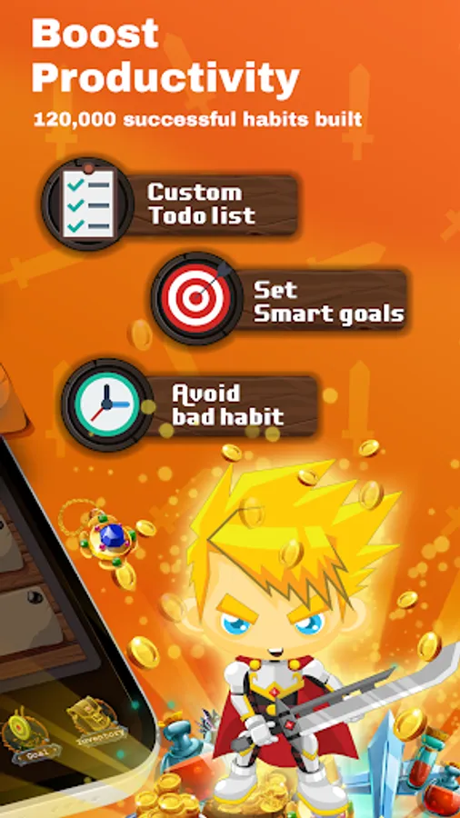 Habit Hunter uses a special technique, called Gamification, which will turn your goal, habit, and task to an RPG game. In the game, you'll become a hero finding ways to win monsters and save people. The more task you complete in your real life, the stronger the hero will be.
