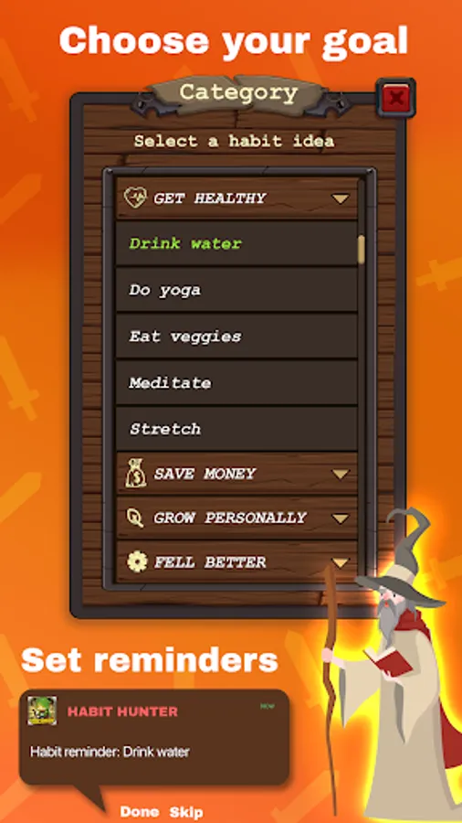 Now! You'll become a hero in the game. You'll create a goal (of course this game will guide you on how to create a smart goal, which is achievable, trackable, and enjoyable), then complete each part of the goal to continuously defeat monsters and challenges inside the game. Each time you win a monster, you'll get rewards to level up your self!