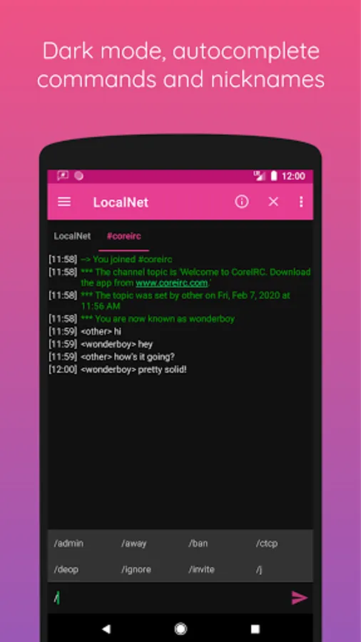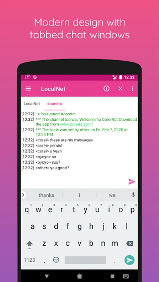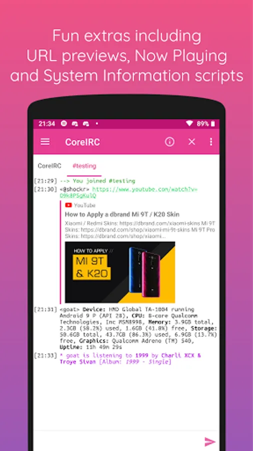 Purchase the full version from https://play.google.com/store/apps/details?id=co.aureolin.coreirc and gain access to the following features.
