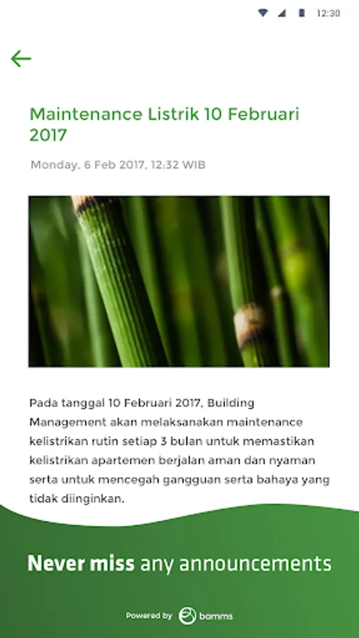 Introducing Vida Bekasi by BAMMS, a mobile application that allows all tenants to receive information about their building and units, to report problems or incidents, to book facilities, to create and manage inquiries, and to request for any value added services provided by the town management.