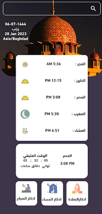 تطبيق اوقات الصلاة حسب الاوقات الصحيحة المعتمدة في مدينتك
