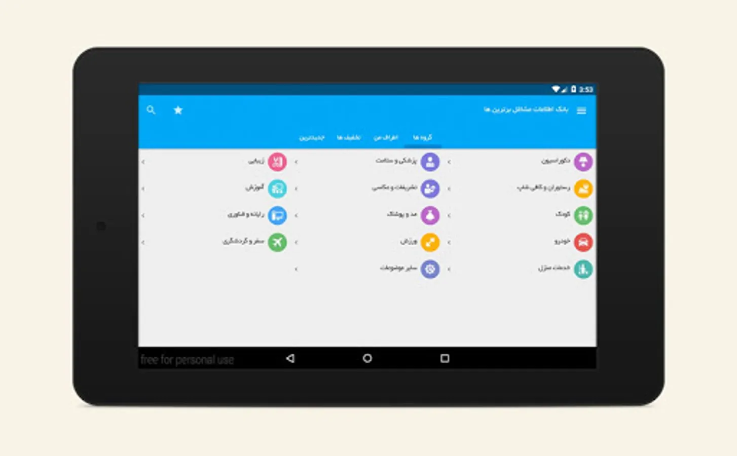 Specialist doctor, Dentist, Plastic surgeon, Restaurants and caterings, Festivity services, Photography studios, Clubs, Gardens and drawing rooms, Beauty salons, Fashion shows, Fashion designs, Furniture and bedroom furniture, Interior decorating, Schools, Nursery school, Travel agencies, Institutes, and etc.