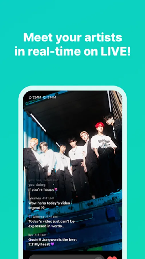 · Send chat messages and hearts in real-time on your favorite artists' streams!
