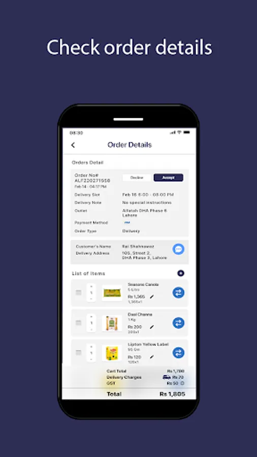 We believe in transparency! You can view your customer’s data with respect to their order, including details such as customer name, address, delivery time slot, the list of products ordered, total bill, payment method and even the rider assigned.