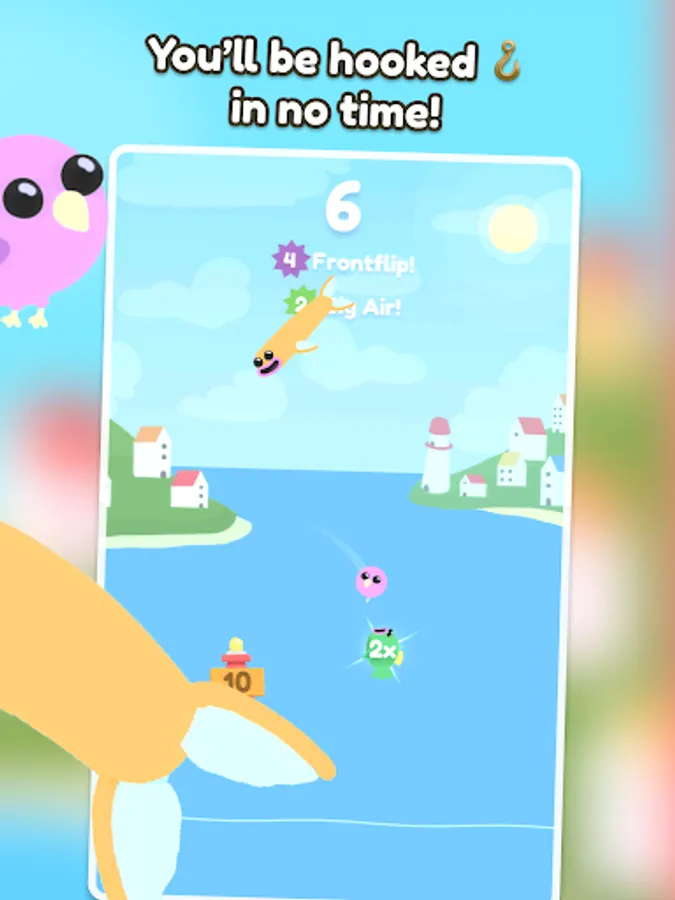 It's not just about knocking around a fish though - it's about doing it with style! Pull off flips, tail stalls, fin shakes, faceplants and other acrobatic maneuvers to earn points. Then, compare your best scores with friends and others around the world!