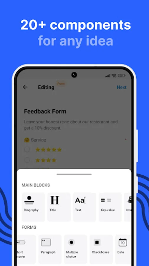 Creating a link in bio has never been easier. With LinkMenu, you can make your own site with just a few clicks. It's a free website builder app that lets you choose from 20 ready-made blocks and customize the design to your liking. You can add text, images, videos, buttons, or forms to your pages, and LinkMenu will generate a clear page analysis to help you improve the user experience.