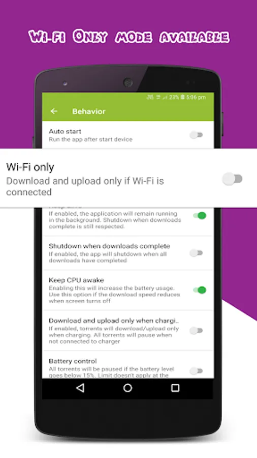 ✔ WiFi only mode (Save on data consumption - by setting wi-fi only downloading)