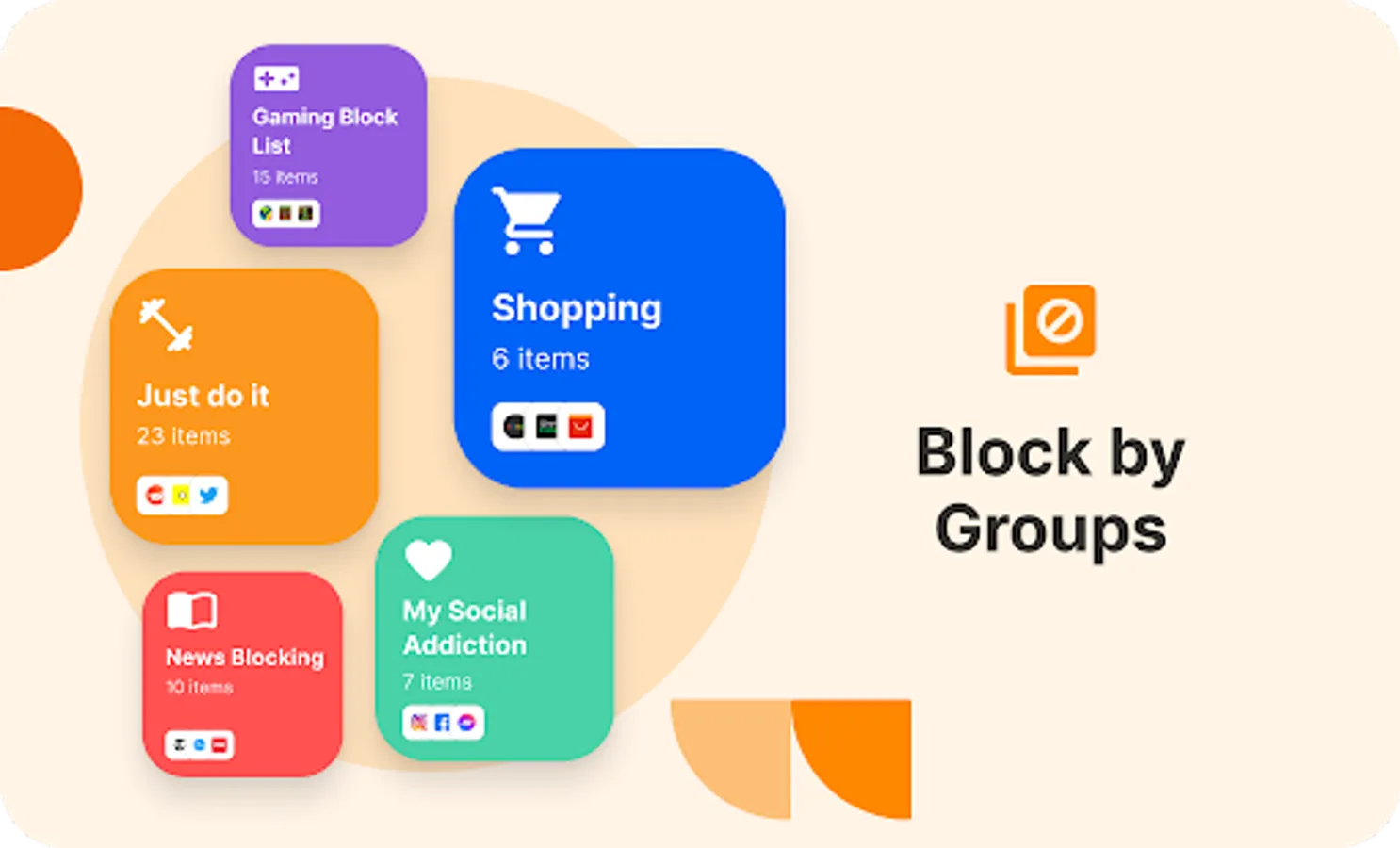 Remove your biggest distractions and time-wasters with customized block lists. Start a focus session to choose which hours of the day you want to be focused and which hours you want to have a break. Block by category to block thousands of websites and apps in one click.