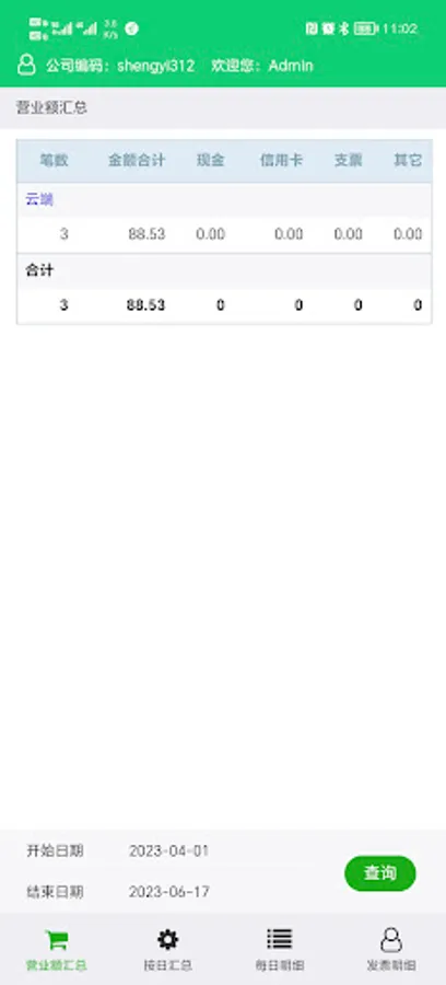 Provide a summary query of tickets and invoices of Bohao Cloud Catering