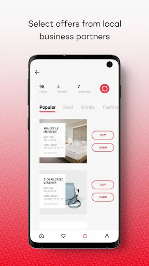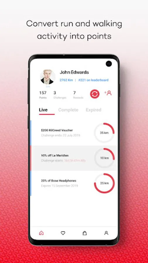 Take challenges: Scroll through the great offers and find one you want. Take a challenge (e.g. walk/run 30 kilometers in 30 days) and automatically unlock a reward to claim with a local business.