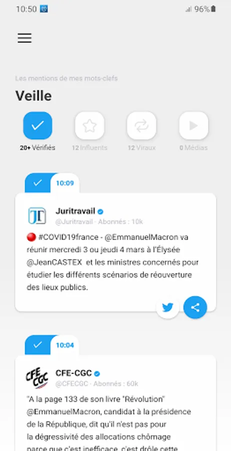 👀 Real-time monitoring: be alerted when you are mentioned by certain types of users: verified accounts, influencers, journalists, media, viral tweets.