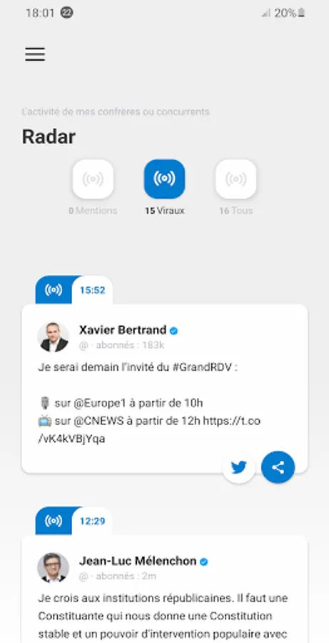 🔍 Real-time radar: automatically monitor the activity of your competitors, and be informed as soon as they publish, viralize a publication, etc.