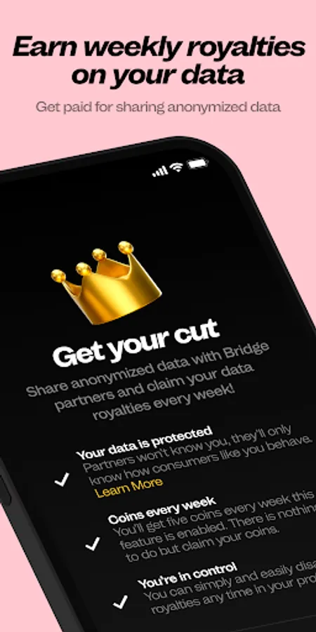 What's better, the Bridge app tracks your purchases in real-time and automatically deposits the cash back to your account, meaning the easy-to-use interface makes it simple to track your spending and your earnings. Then, you can cash out your earnings instantly to your linked account for real money - no waiting and no messing around with gift cards.