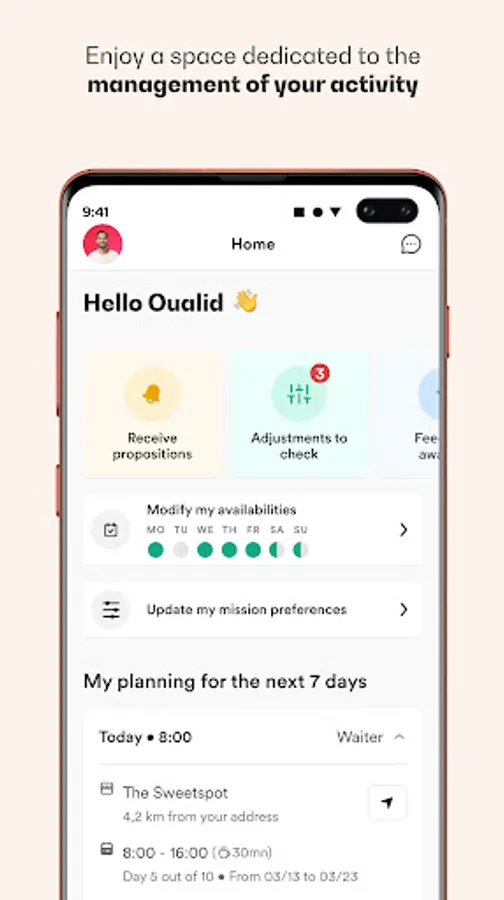 Receive daily mission propositions adapted to what you're looking for and accept the ones you want.