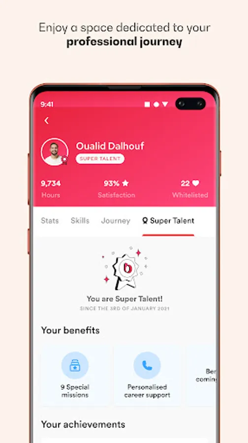 Choose your work pace, get your skills recognized ans receive payment for your missions by the week.