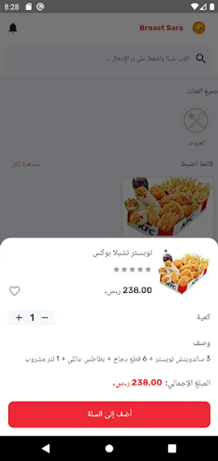 Broast Sara is one of the best fast food restaurants in Saudi Arabia. Find amazing deals and offers on the Prost Sarah app and have it delivered to your home. Enjoy fried chicken, twisters, zinger boxes and more all in the comfort of your own home!