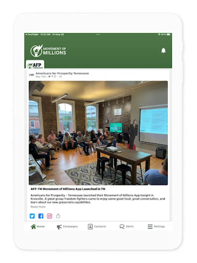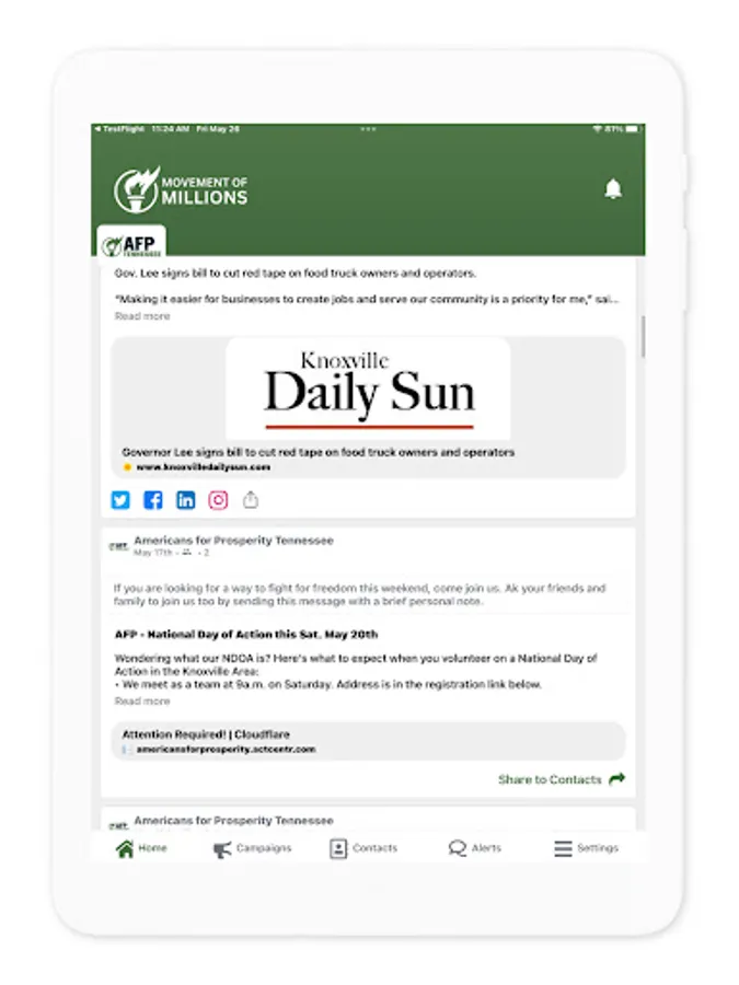 Our goal is to give you the tools you need to easily engage on the issues you care about. Our Movement of Millions app is a one-stop-shop for you to gather information, take action, and recruit your friends and community to do the same.