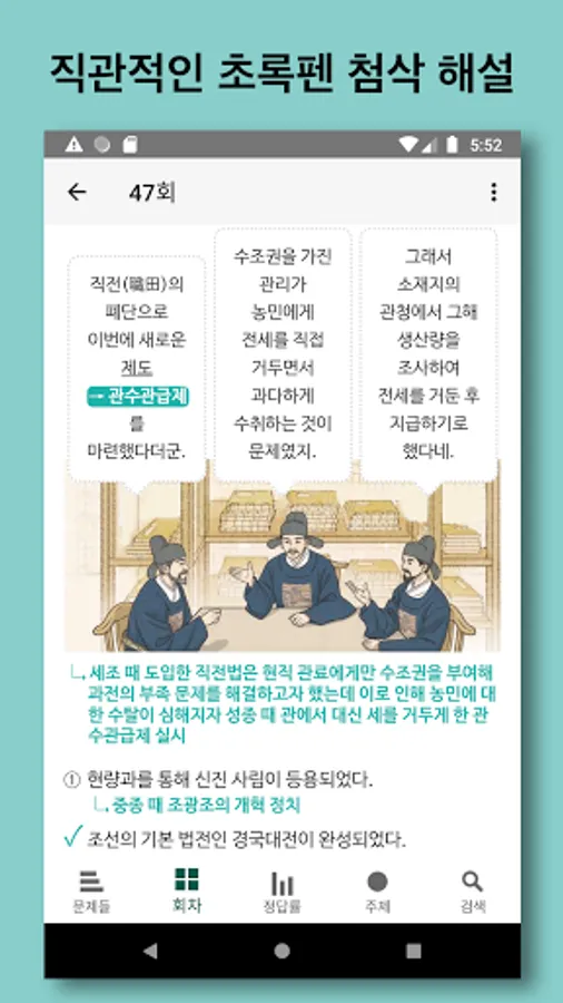 ▪︎ Provides systematic study and ability verification function based on advanced questions of the Korean History Proficiency Test.