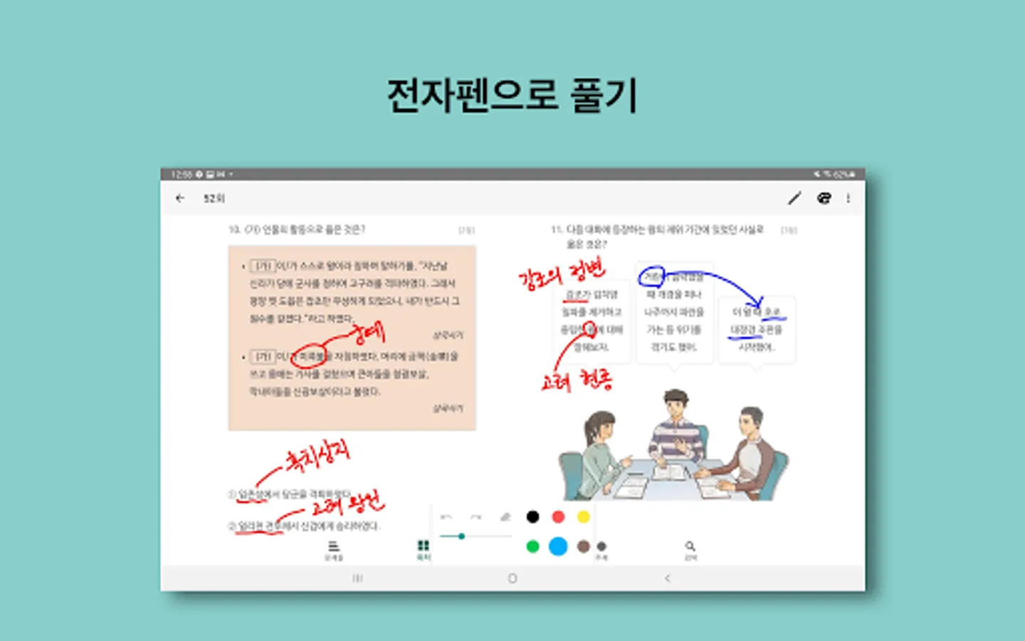 It provides a two-step problem-solving method like a real test paper on a tablet device.