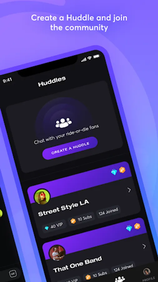 Huddles is a place to connect with your favorite Creators, unlock exclusive content, and join communities with other like-minded Fans.