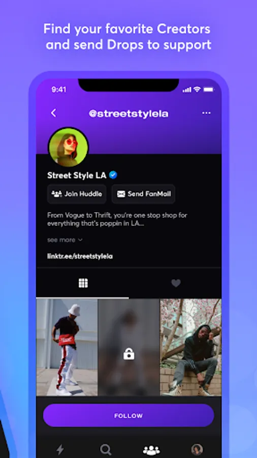 Unlock exclusive content while supporting your favorite Creators by subscribing to become a VIP in a Creator’s Huddle. Send some love by tipping on content with Drops, our in-app digital good that can be redeemed for cash.