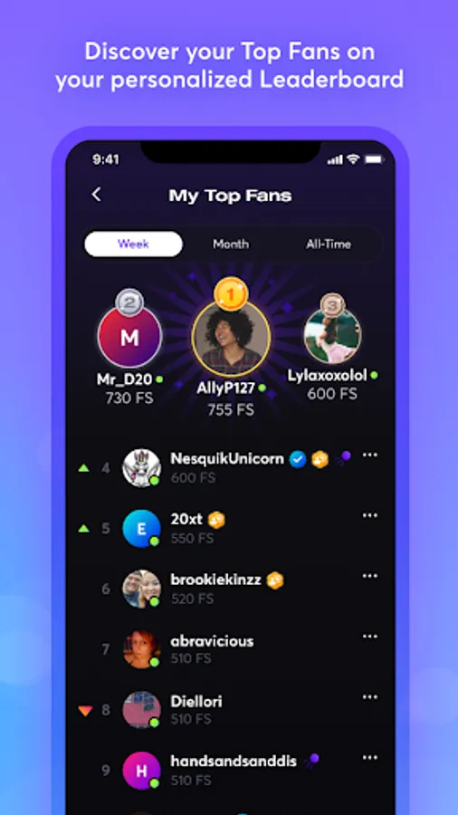 Earn points and climb your Creator’s leaderboard to get recognized for being a Top Fan.
