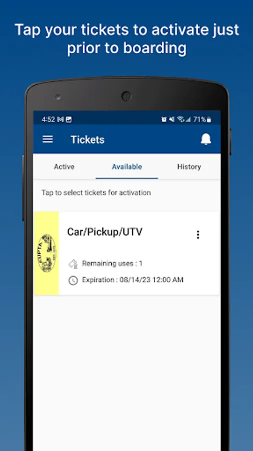 - Easily activate and display ticket to deckhands