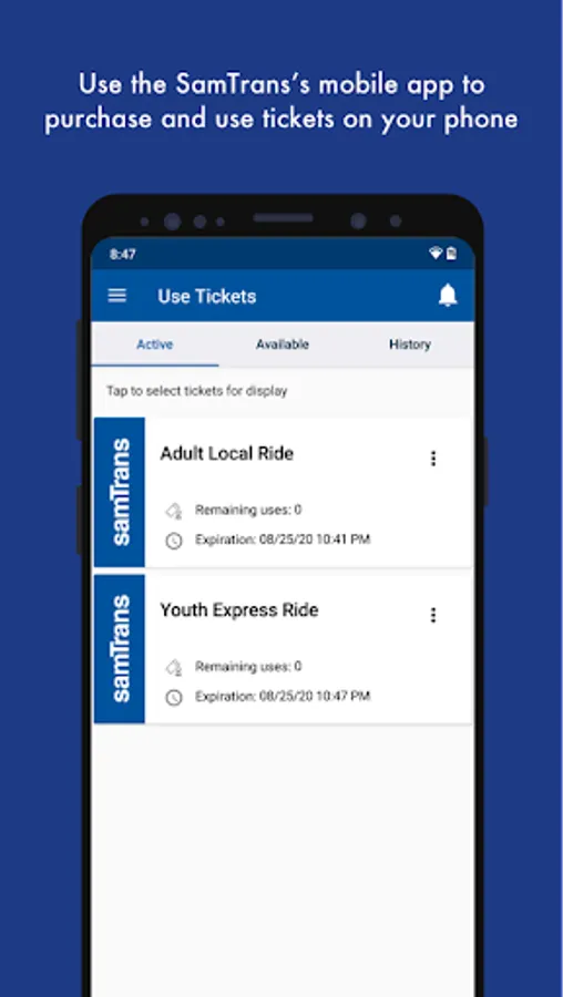 The official SamTrans Mobile ticketing app lets you use your phone to pay your fare on any SamTrans local or express routes. Just download the free app, register your debit/credit card in our secure system, and we’ll get you where you need to go.