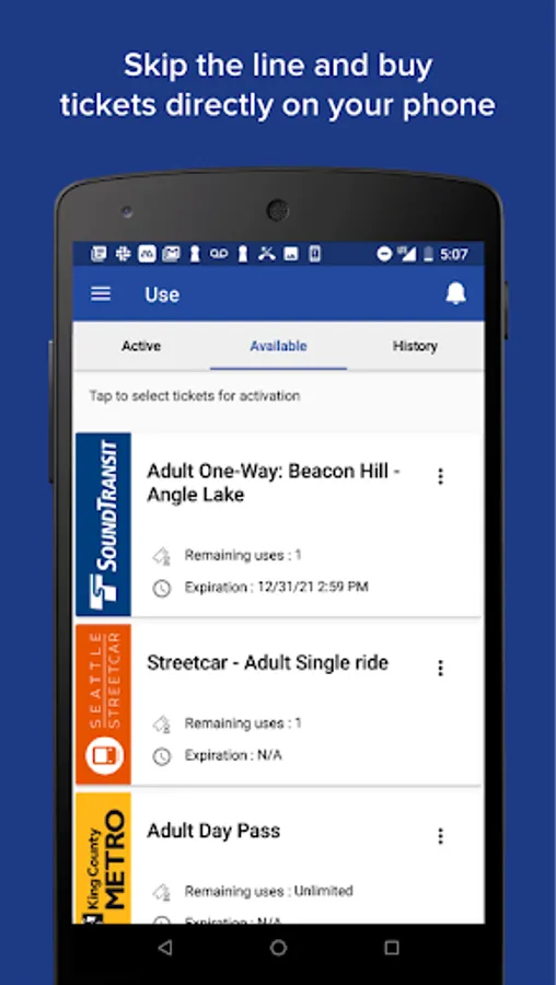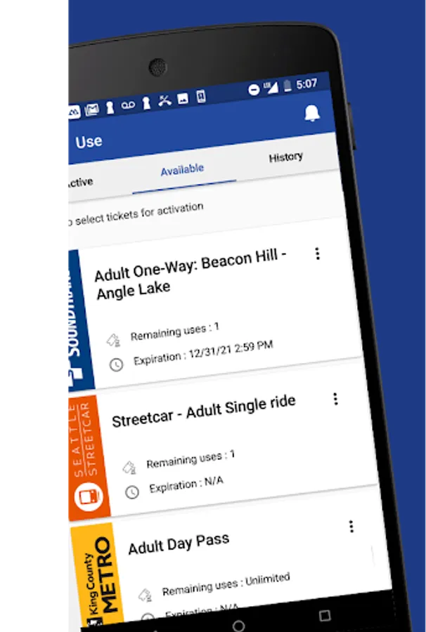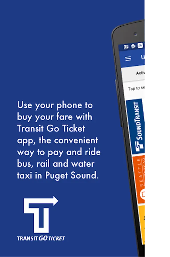 The Transit Go Ticket App allows riders to buy bus, rail and water taxi tickets using their mobile device. No more worries about carrying cash for transit fare, Transit Go Ticket is good on King County Metro Buses, Sound Transit Express Bus, Light Rail and Sounder, King County Water Taxi, Seattle Streetcar and Kitsap Transit routed buses and fast ferry.
