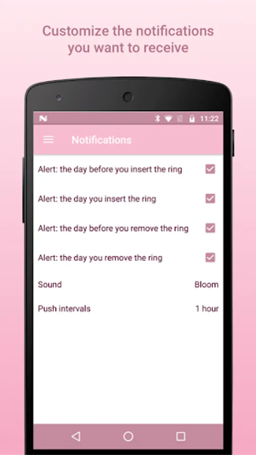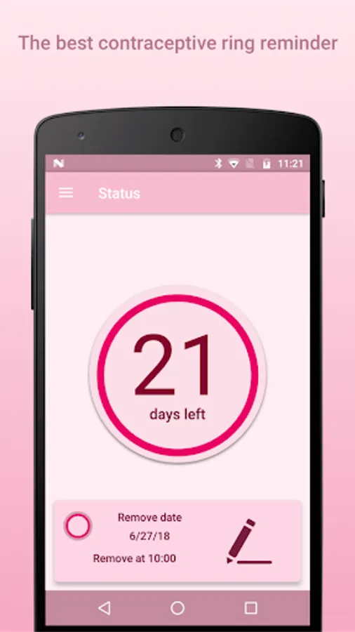 It's very simple to set up and use. You just have to select how many days you stay with the ring and the app will start notifying you when you'll have to insert or remove your contraceptive ring. In addition, you can always check the status of the current ring.
