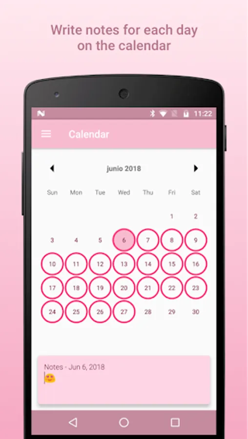 • Custom calendar with notes for each day