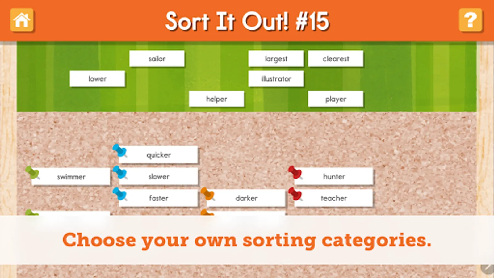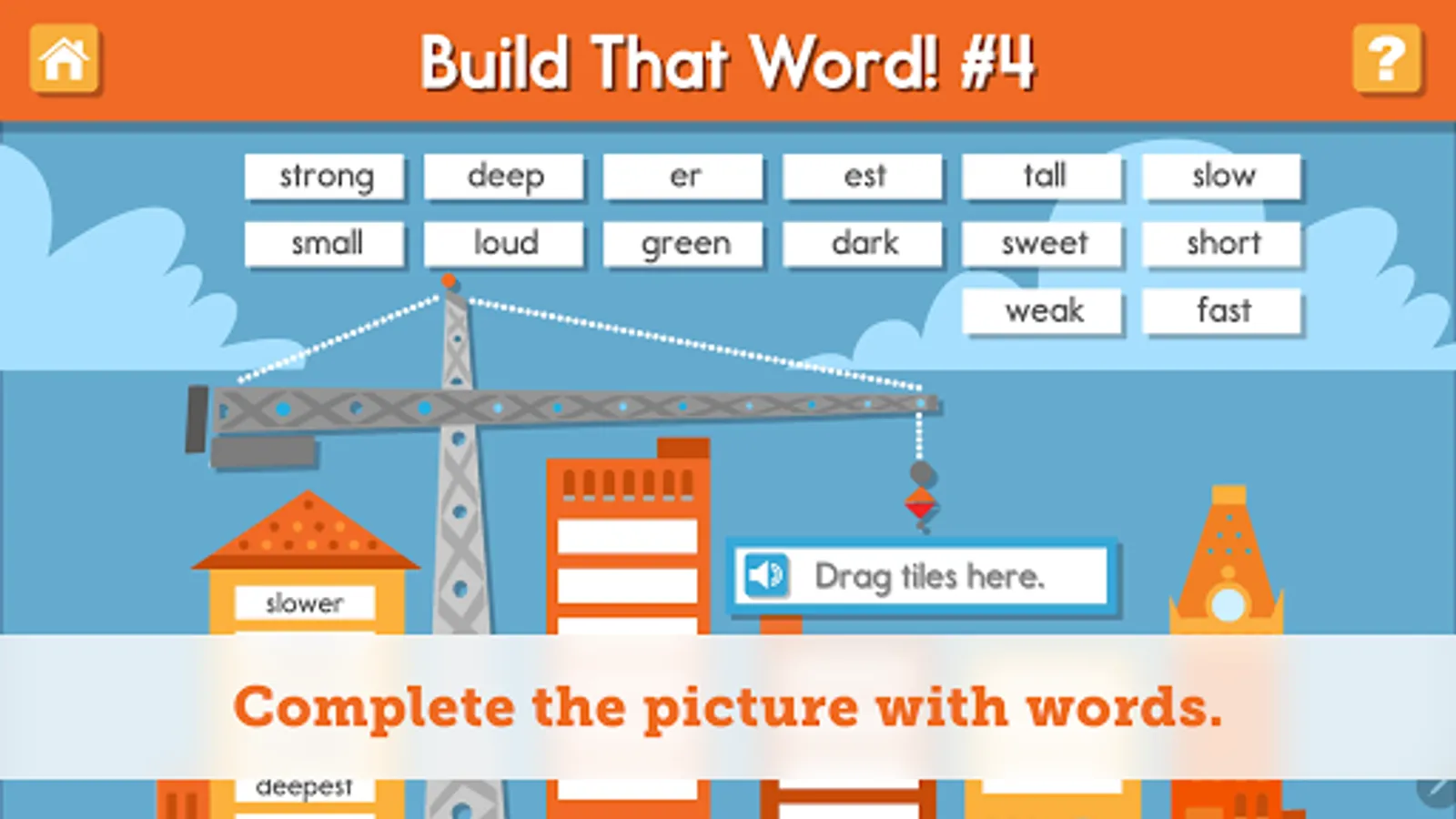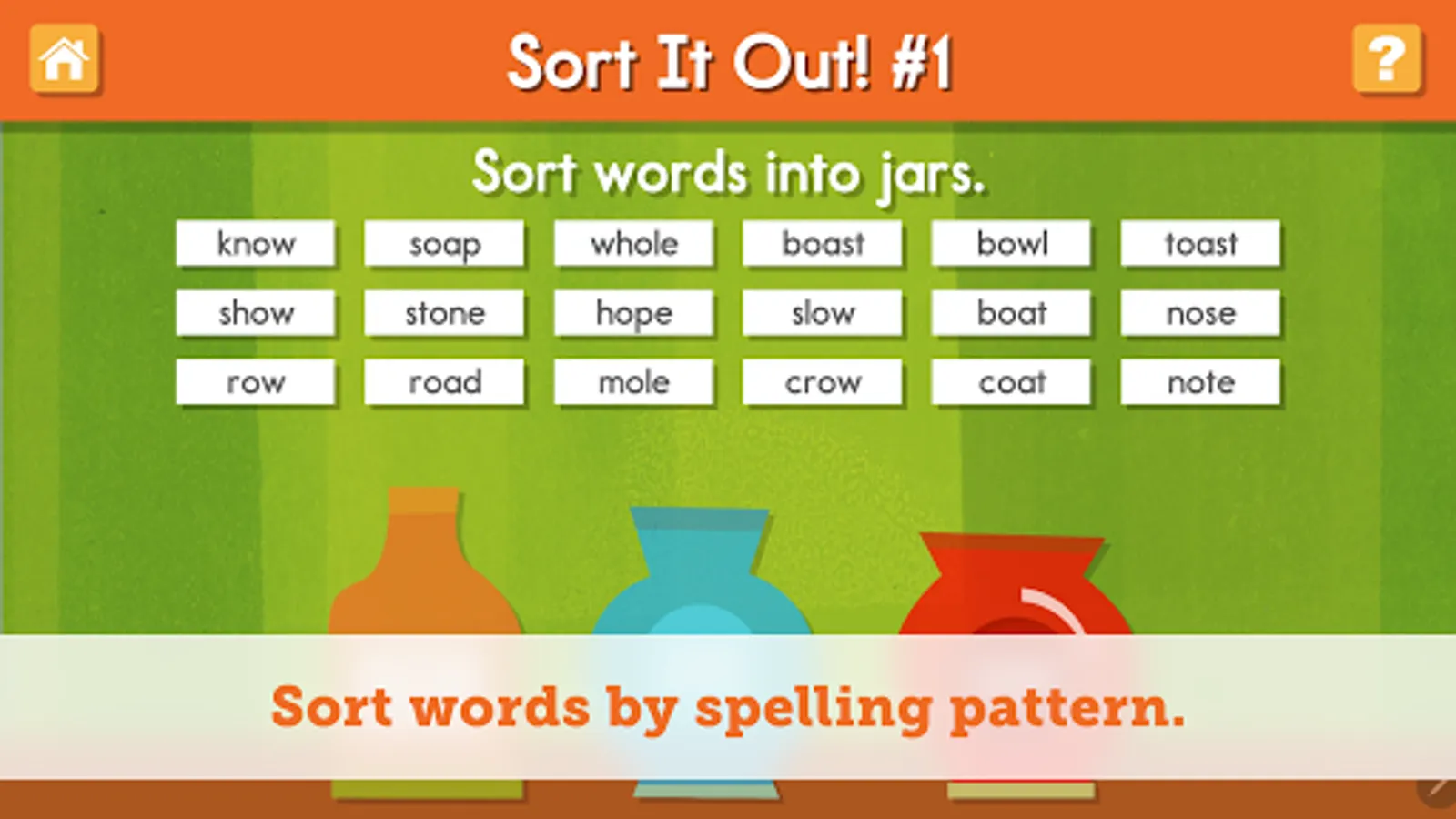 In Build That Word!, children hear a word, and then assemble the word by ordering letters or groups of letters. In Sort It Out!, children categorize words based on spelling, sound, or other attributes. Both games include fun animations as children progress through the games.