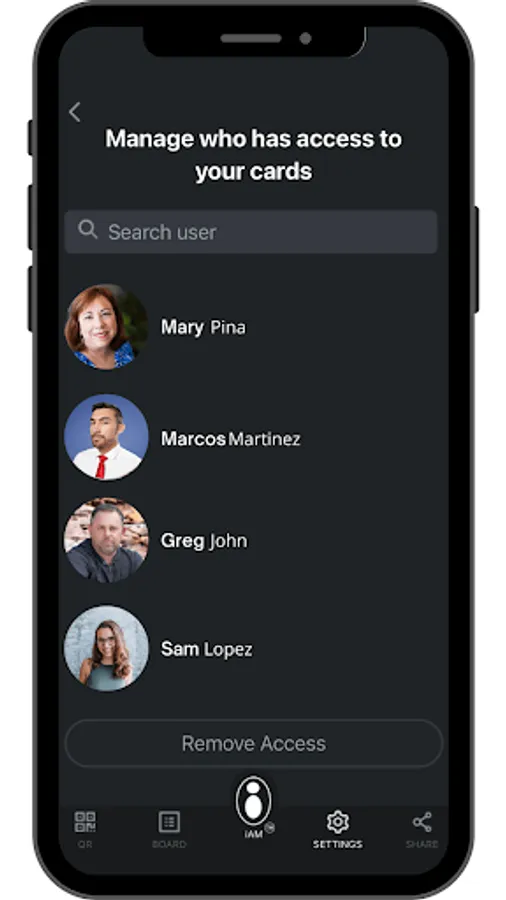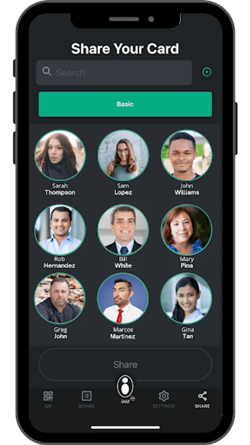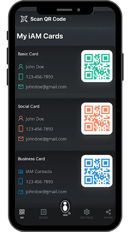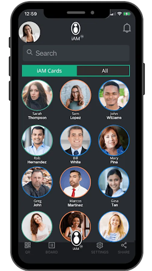 Connect with others by sharing and trading your digital cards now! Share the iAM via QR code or Text to fellow Apple and Android users!