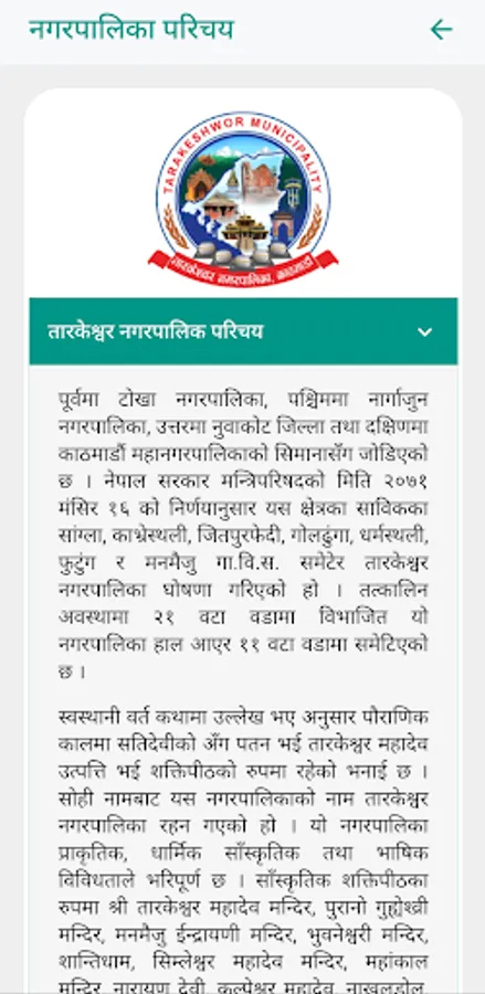 - - - - - Introduction to Tarakeshwor Municipality Mobile Applications - - - - -